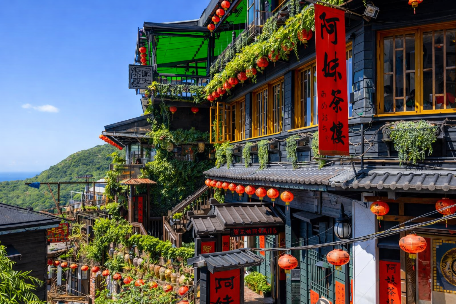 Cửu Phần là làng cổ nằm cheo leo trên sườn núi Đông Bắc Đài Loan, nổi tiếng với những con hẻm nhỏ, bậc thang dốc và đèn lồng đỏ treo dọc lối đi. Phố cổ mang đậm không khí hoài niệm với các ngôi nhà cổ sát nhau, tạo nên khung cảnh rất đặc trưng. Từ các quán trà truyền thống, du khách có thể ngắm trọn view núi - biển. Bên cạnh đó, Cửu Phần còn hấp dẫn bởi ẩm thực địa phương như bánh khoai môn, bánh cá và trà Đài Loan, rất thích hợp để vừa tham quan vừa thưởng thức.