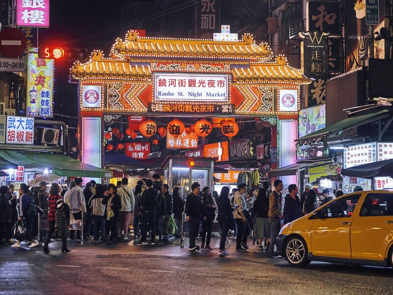 Chợ đêm Raohe là những khu chợ đêm nổi tiếng, đại diện cho văn hóa ẩm thực đường phố Đài Loan. Tại đây, du khách có thể thưởng thức các món đặc trưng như bánh tiêu, mì bò, xúc xích Đài Loan hay trà sữa, đồng thời cảm nhận không khí nhộn nhịp về đêm rất đặc trưng của Đài Bắc.
