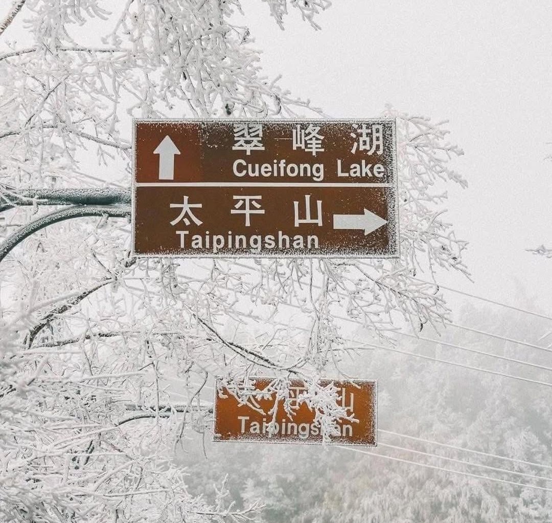 Từ những biển chỉ dẫn phủ băng, rừng cây trắng xóa cho đến khung cảnh mờ sương kéo dài trên các sườn núi, Taipingshan mang lại cảm giác như đang lạc vào một thế giới khác – tĩnh lặng, lạnh giá nhưng rất cuốn hút.