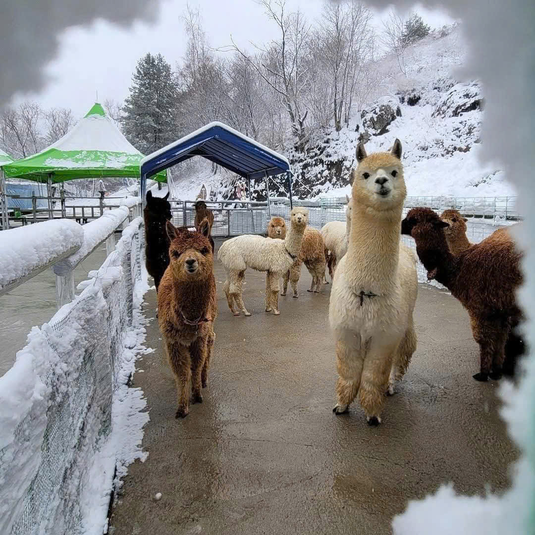 Daegwallyeong Sheep Farm nằm trên vùng đồi cao của Pyeongchang, nổi bật với khung cảnh núi non rộng mở và những chú cừu đáng yêu giữa nền tuyết trắng. Vào mùa đông, trang trại khoác lên mình vẻ đẹp thơ mộng, yên bình và rất đặc trưng của vùng Gangwon. Du khách có thể đi dạo nhẹ quanh đồi, chụp ảnh check-in và tận hưởng không khí trong lành, khác hẳn sự náo nhiệt của Seoul.