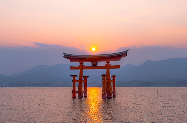 Nổi bật với cổng torii đỏ “nổi” trên biển, nằm trên đảo Miyajima – một trong ba cảnh đẹp nổi tiếng nhất Nhật.