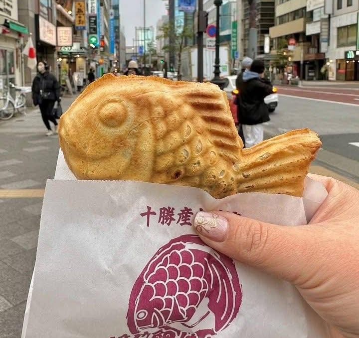 Taiyaki ở đây có lớp vỏ giòn, nhân đậu đỏ ngọt vừa. Là món ăn vặt quen thuộc, dễ mua và rất phù hợp để ăn trên đường.