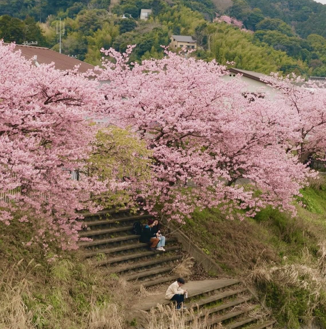 Khi anh đào ở Tokyo vẫn còn trong giai đoạn “ngủ đông”, Kawazu đã bước vào mùa hoa rực rỡ nhất trong năm. Những hàng Kawazu Sakura nở sớm với sắc hồng đậm, bông to và dày, tạo nên khung cảnh rất khác so với mùa anh đào truyền thống cuối tháng 3.